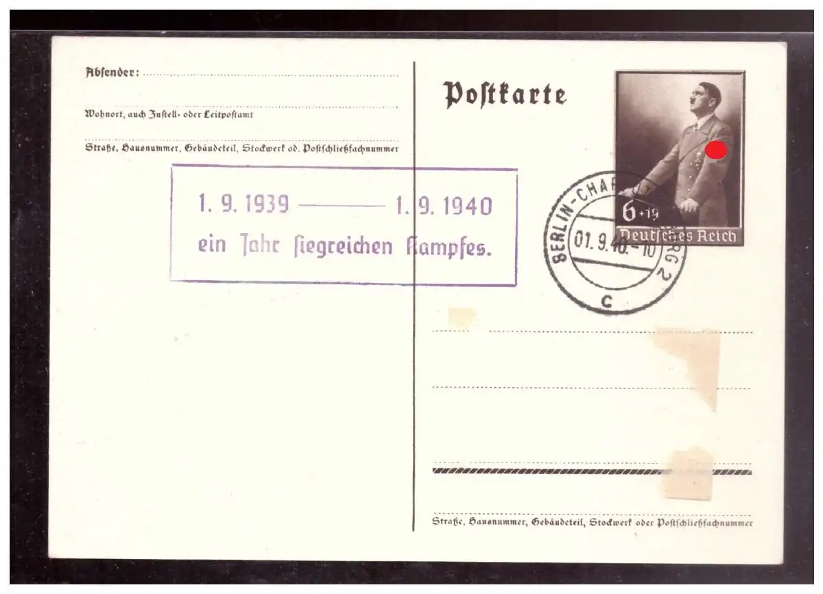 Dt- Reich (020550) Propagandaganzsache Es kann nur einer Siegen und das sind Wir, blanco gestempelt am 1.9.1940
