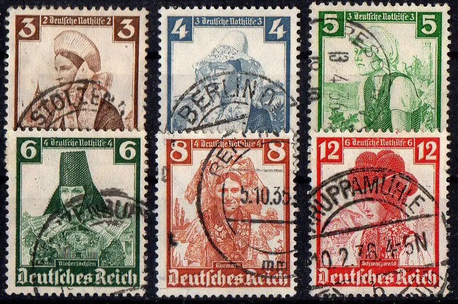 Deutsches Reich, Michel Nr. 588 - 593 (Teilsatz) gestempeltRundstempel und saubere Zähnung.