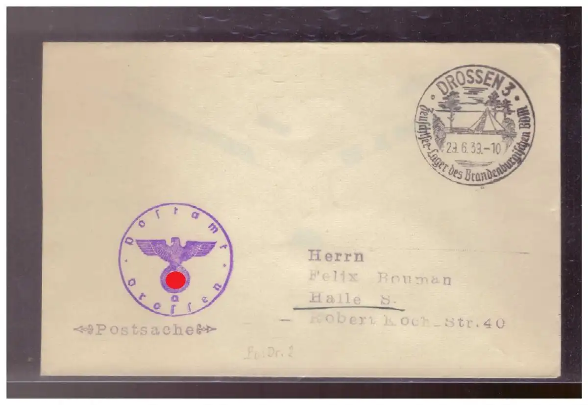 Dt- Reich (024374) Postsache mit Propagandastempel BDM (Bund Deutscher Mädel) Brandenburgschen BDM Drossen 1939