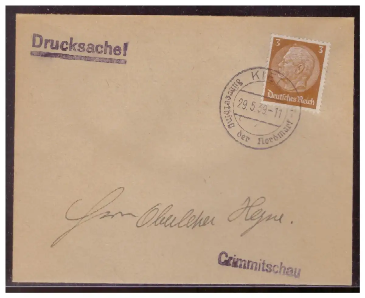 Dt- Reich (006815) Propaganda Umschlag Drucksache mit Sonderstempel Kiel Füherthing der Nordmark HJ gestempelt 29.5.1939