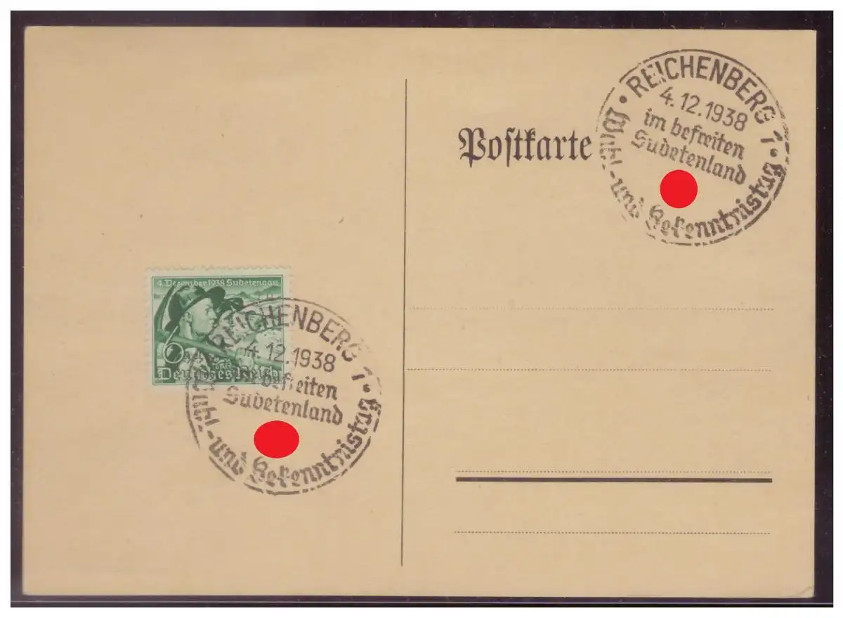 Sudetenland (007751) Propagandasonderstempel Reichenberg 4.12.1938 auf Postkarte mit MNR 684 Volksabstimmung im SDL,