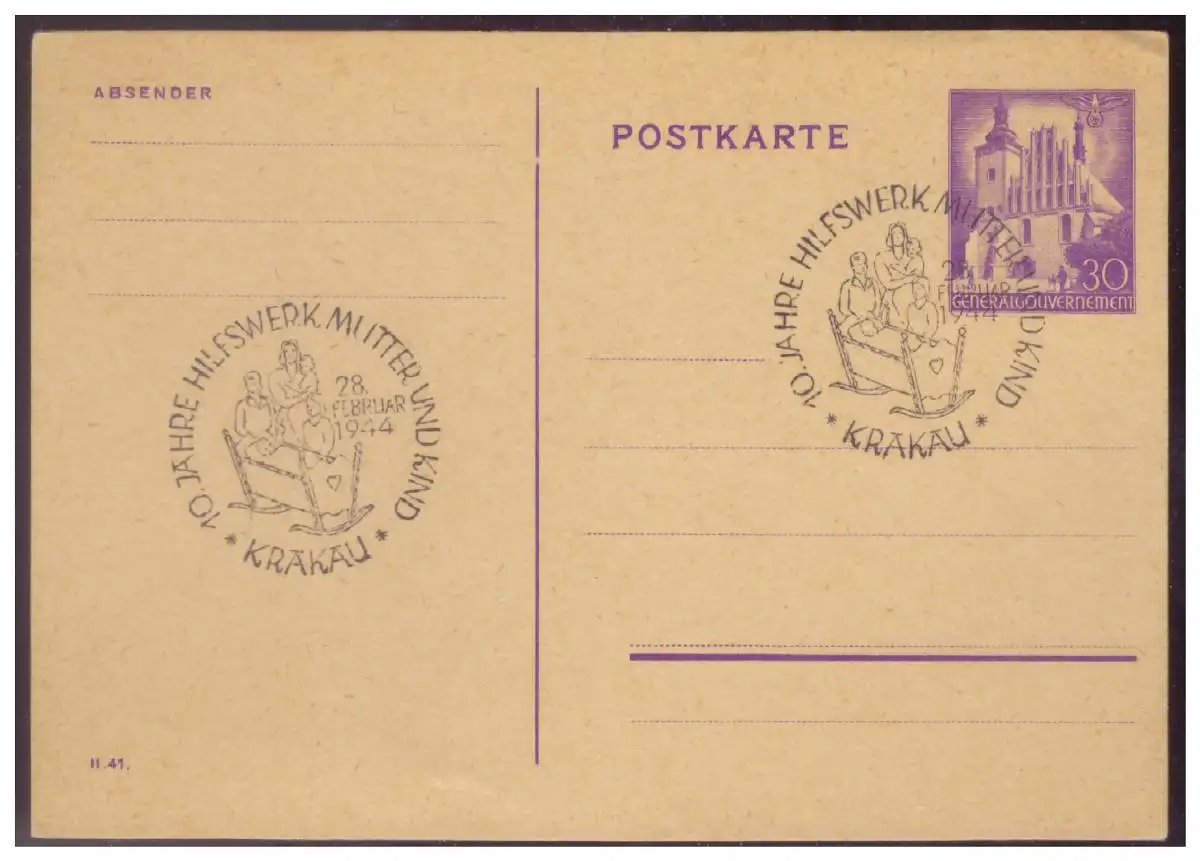 GG (007766) Ganzsache P11 blanco gestempelt mit Sonderstempel 10 Jahre Hilfswerk Mutter und Kind Krakau am 28.2.1944