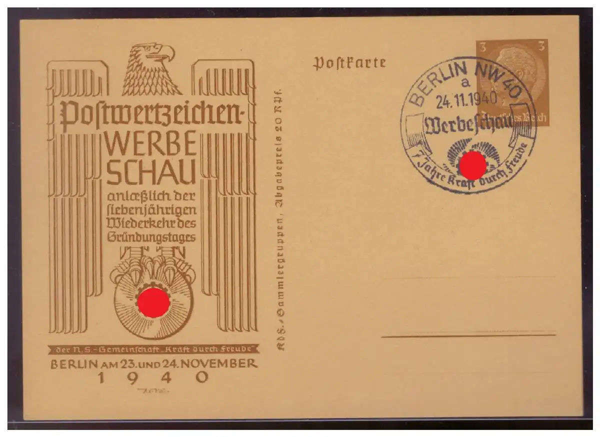 Dt- Reich (008058) Privat Ganzsache Fech PP122 C116, Postertzeichen Werbeschau Berlin 1940, blanco gest.am 24.11.1940