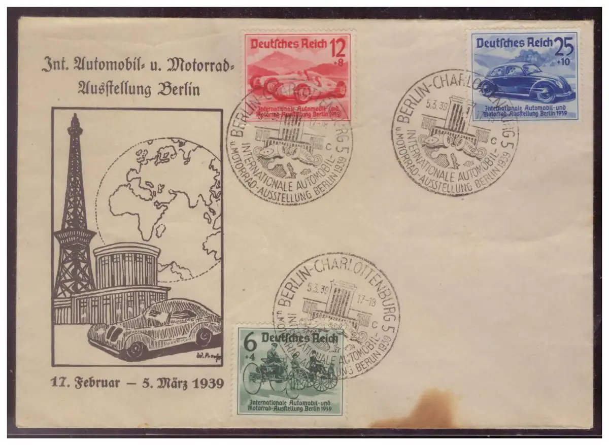 Dt- Reich (008485) Messebrief Int. Automobil u. Motorrad Ausstellung Berlin 1939 MNR 686/ 688 blanco gestempelt mit SST