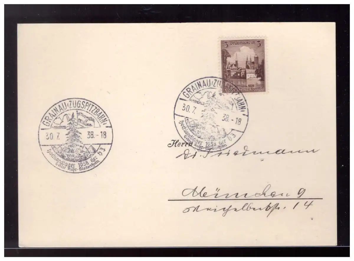 DR- Reich (008516) Propagandapostkarte Grainau Zugspitzbahn, Hochlandlager der HJ, gelaufen als Drucksache am 30.7.1938