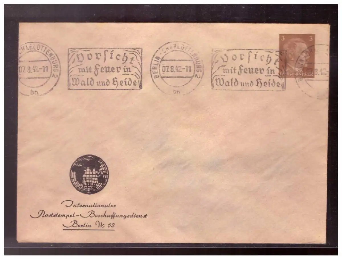 Dt.- Reich (020186) Privatganzsache PU 147 B 1 02 Hitler Berlin Vorsicht Feuer Wald und Heide, Beschaffungsdienst Berlin