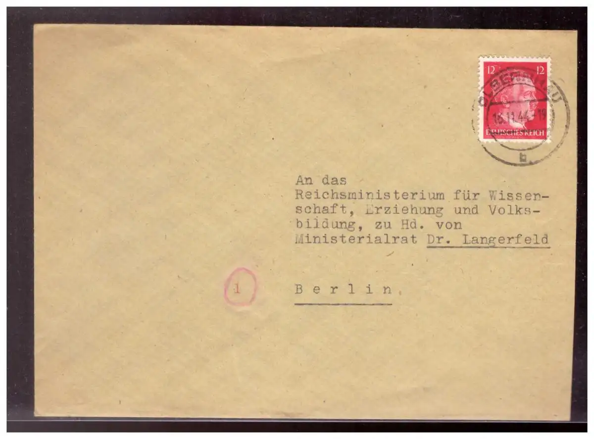 Dt- Reich (020234) Brief an Reichsministerium für Wissenschaft... , gelaufen Olbernhau am 16.11.1944