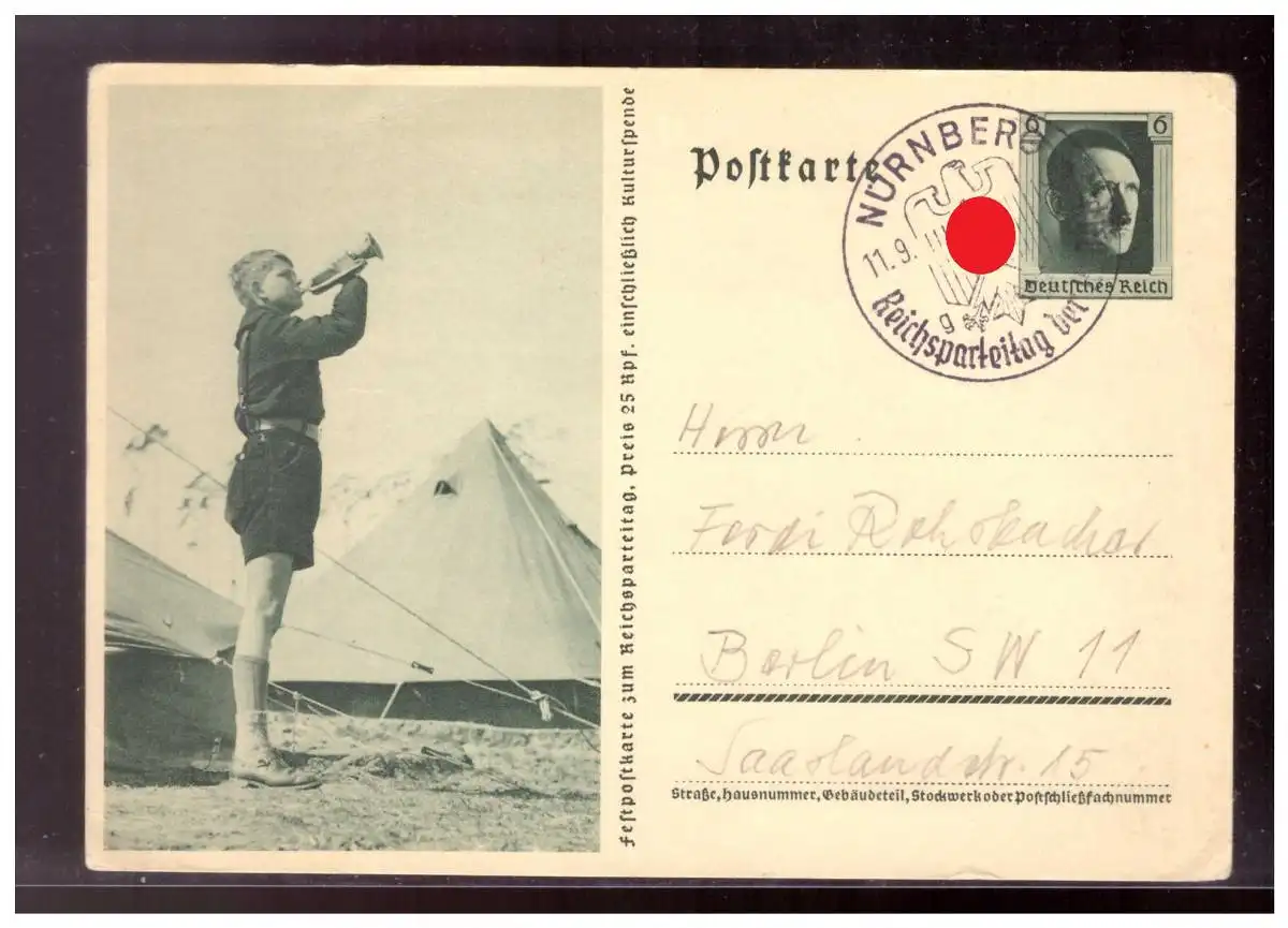 Dt- Reich (020914) Ganzsache Propaganda P 264/ 07 gelauf.gestempelt mit Sonderstempel Nürnberg Reichsparteitag 11.9.1937