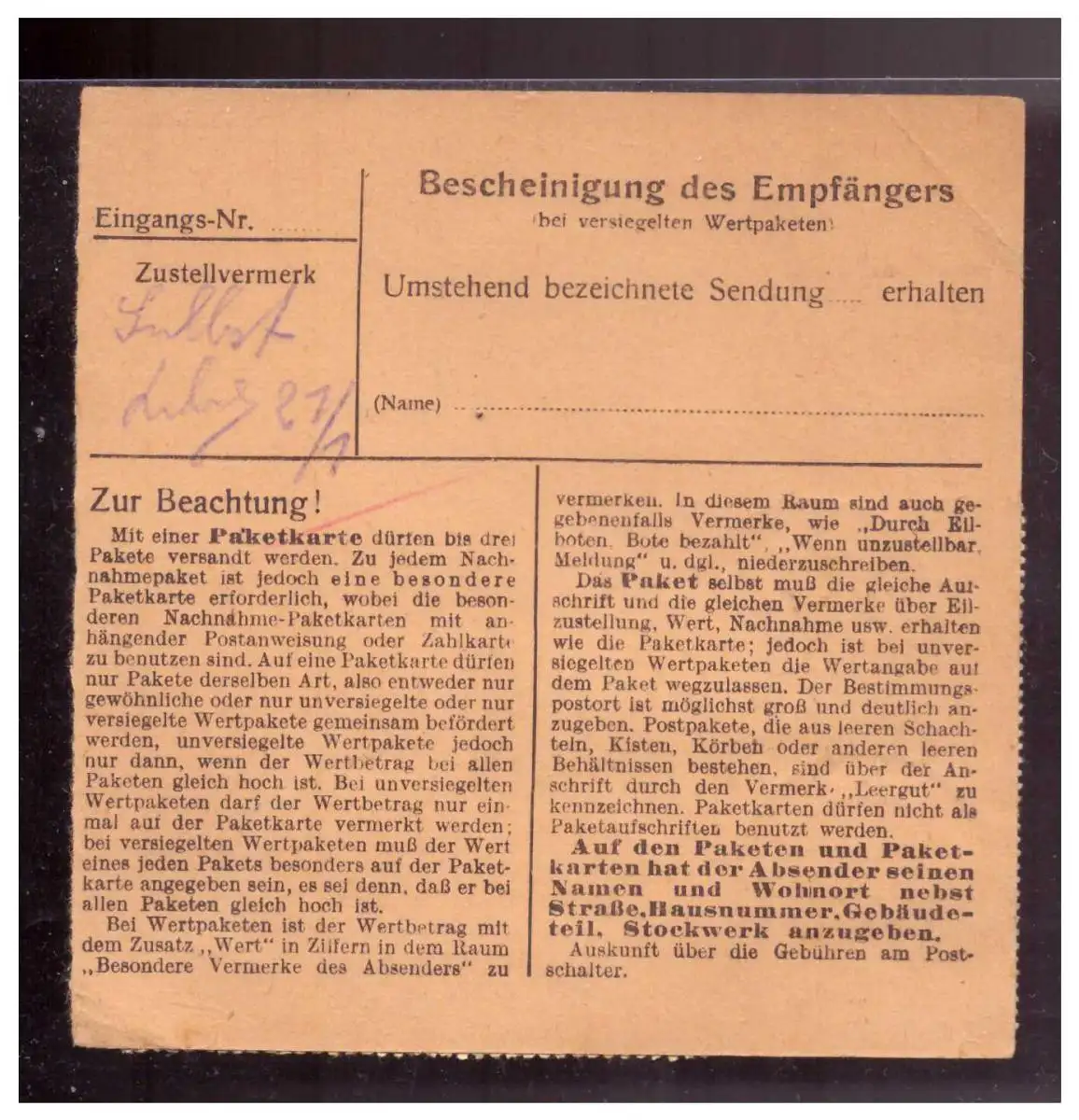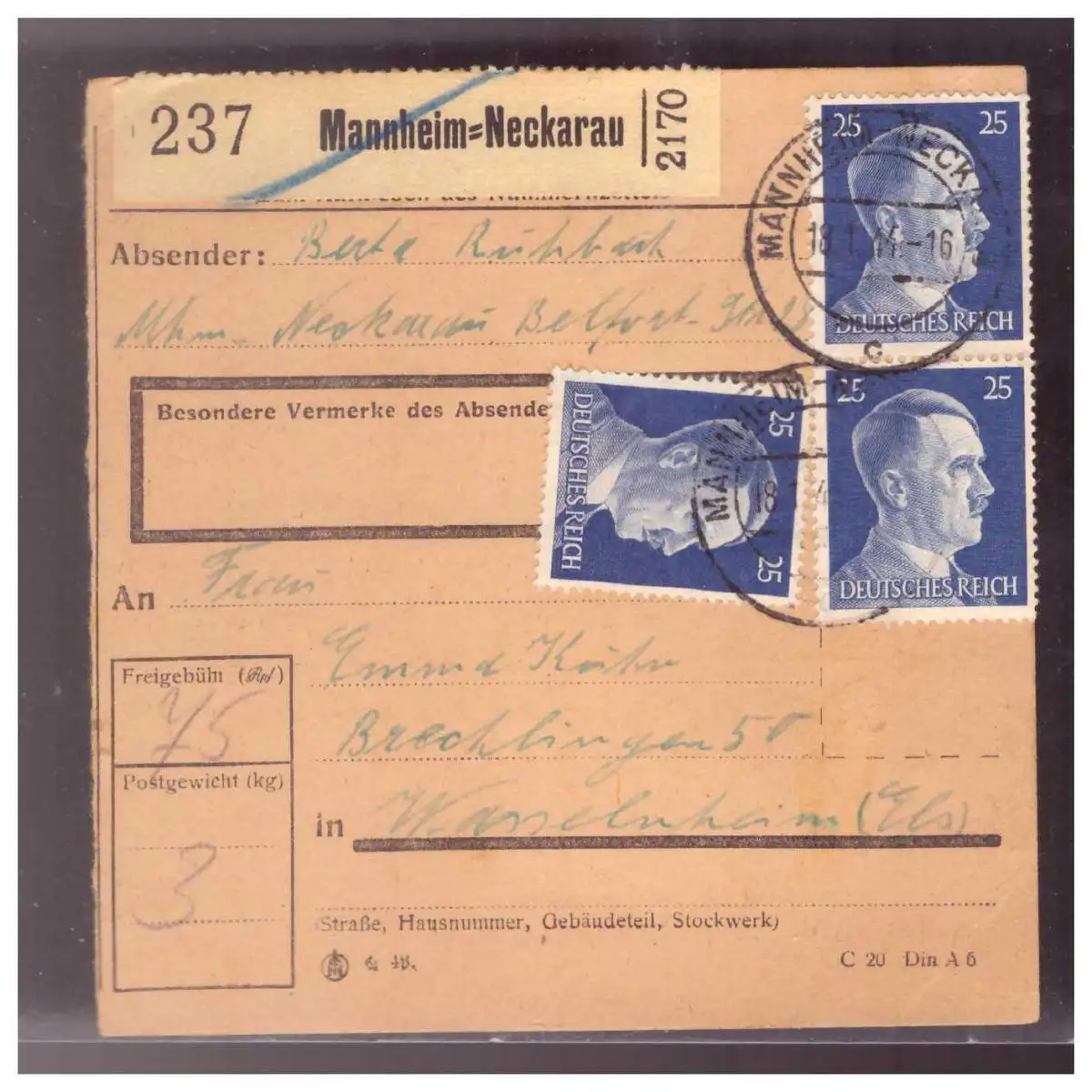 Dt- Reich (020989) Paketkarte Hitlerfrankatur Mannheim- Neckarau vom 18.12.1944