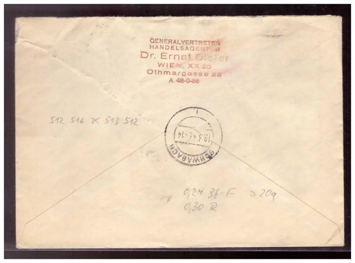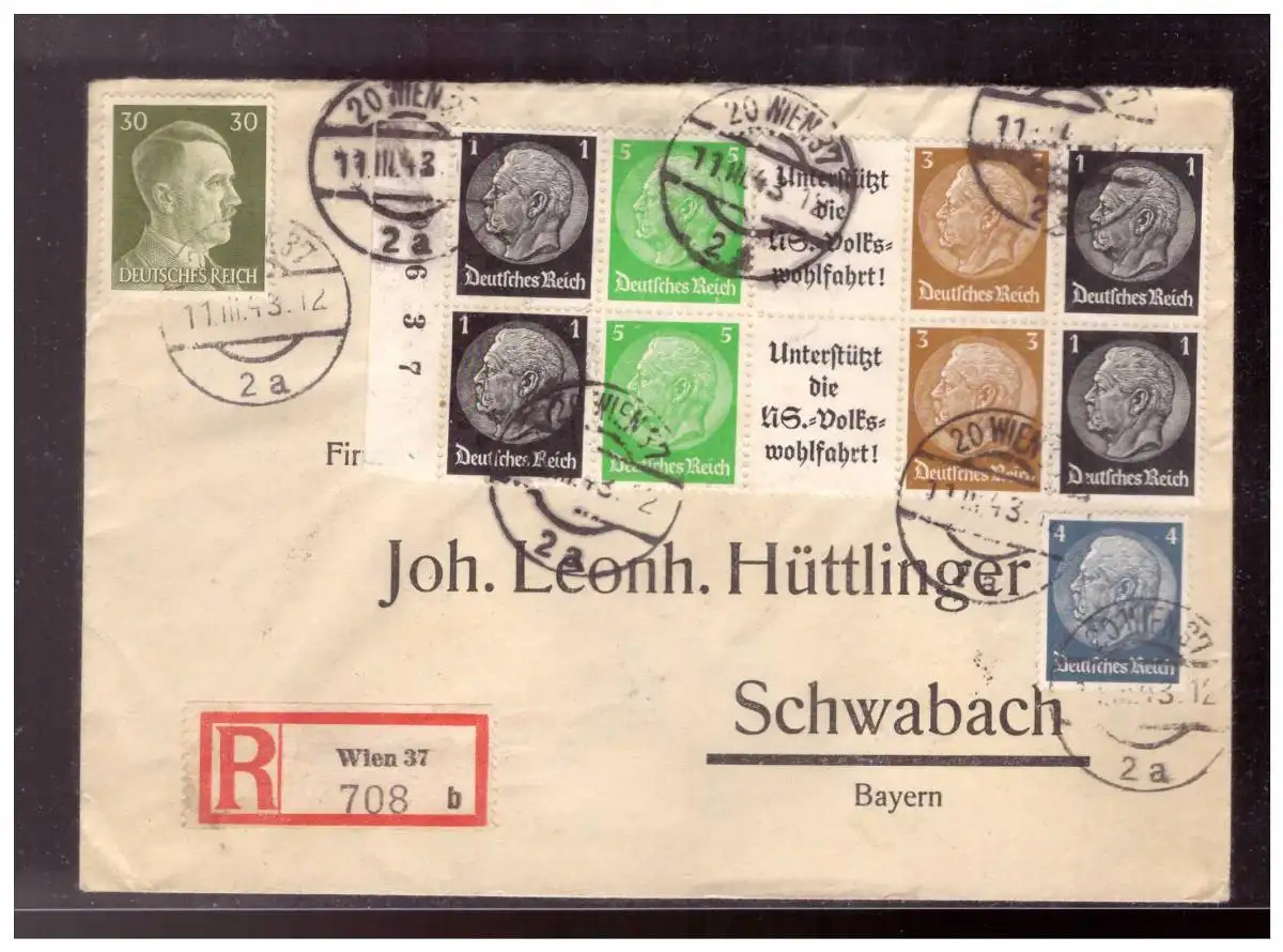 Dt- Reich (021003) Einschreiben Fernbrief mit Einheitsgeber Streifen 2x mit Bogennummer, gelaufen Wien 11.,3.1943