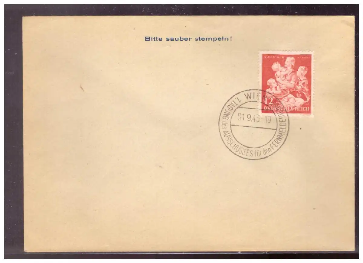 Dt- Reich (021343) Propaganda Beleg mit MNR 859 blanco mit ESST Wien, 1. Tagung des Ausschussess gest.1.9.1943