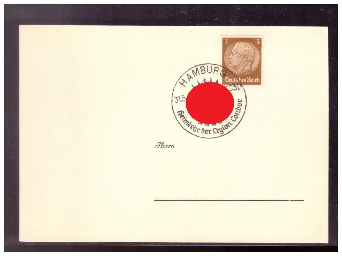 Dt- Reich (021364) Postkarte mit blanco SST Hamburg, Heimkehr der Legion Condor vom 31.5.1939