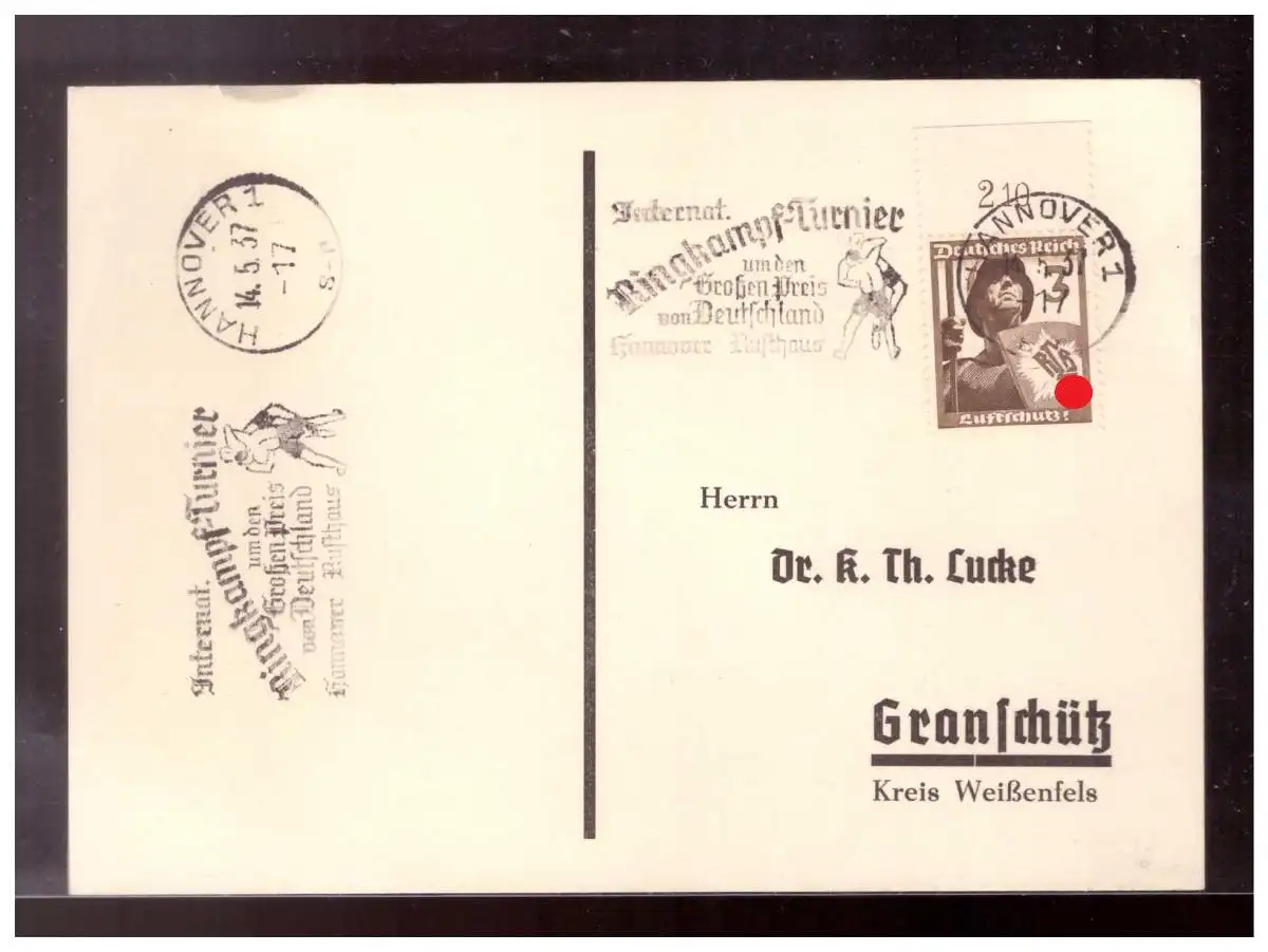 Dt- Reich (022302) Postkarte mit PostwerbestempelInt. Ringkampf-Tunier um den großen Preis von Deutschland