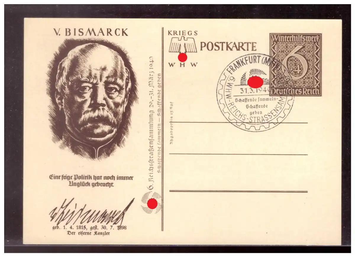 DT- Reich (022446) Ganzsach P286/ 05 v. Bismark mit KDF Zudruck, blanco gestempelt mit SST Frankfurt 31.3.1940