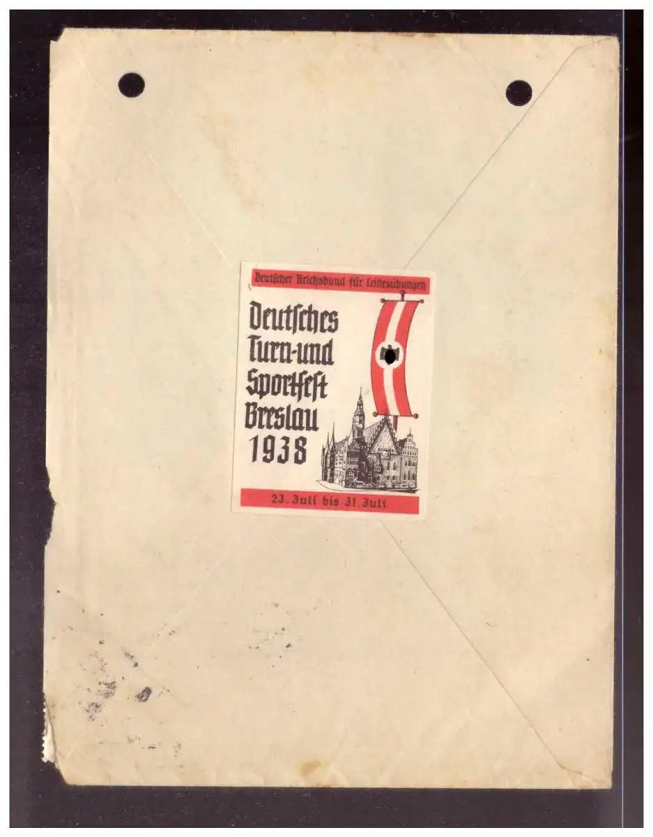 Dt- Reich (022472) Brief Stempel Kurhessenlager der HJ, RS mit Vignette Breslau 1938, gelaufen Kassel