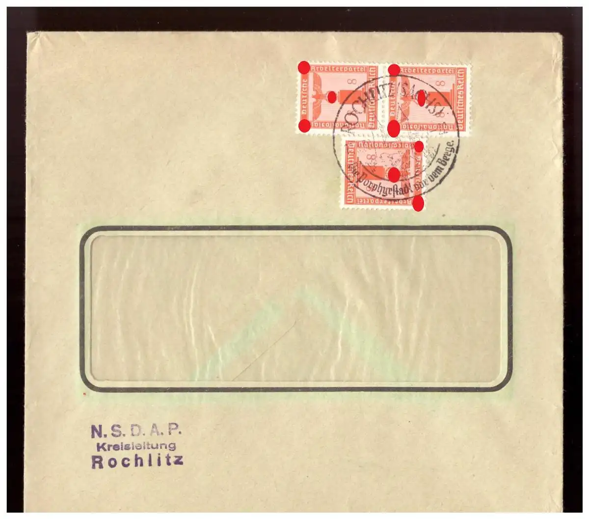 Dt- Reich (022505) Dienstbrief Fensterumschlag NSDAPKreisleitung Rochlitz, gelaufen mit SST Rochlitz