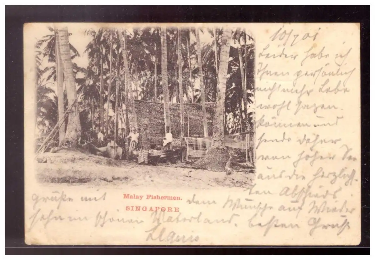 Dt- Reich (022568) Postkarte AK Malay Fishermen Singapore gelaufen Feldpost Marine Schiffpost No 40