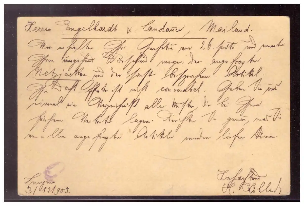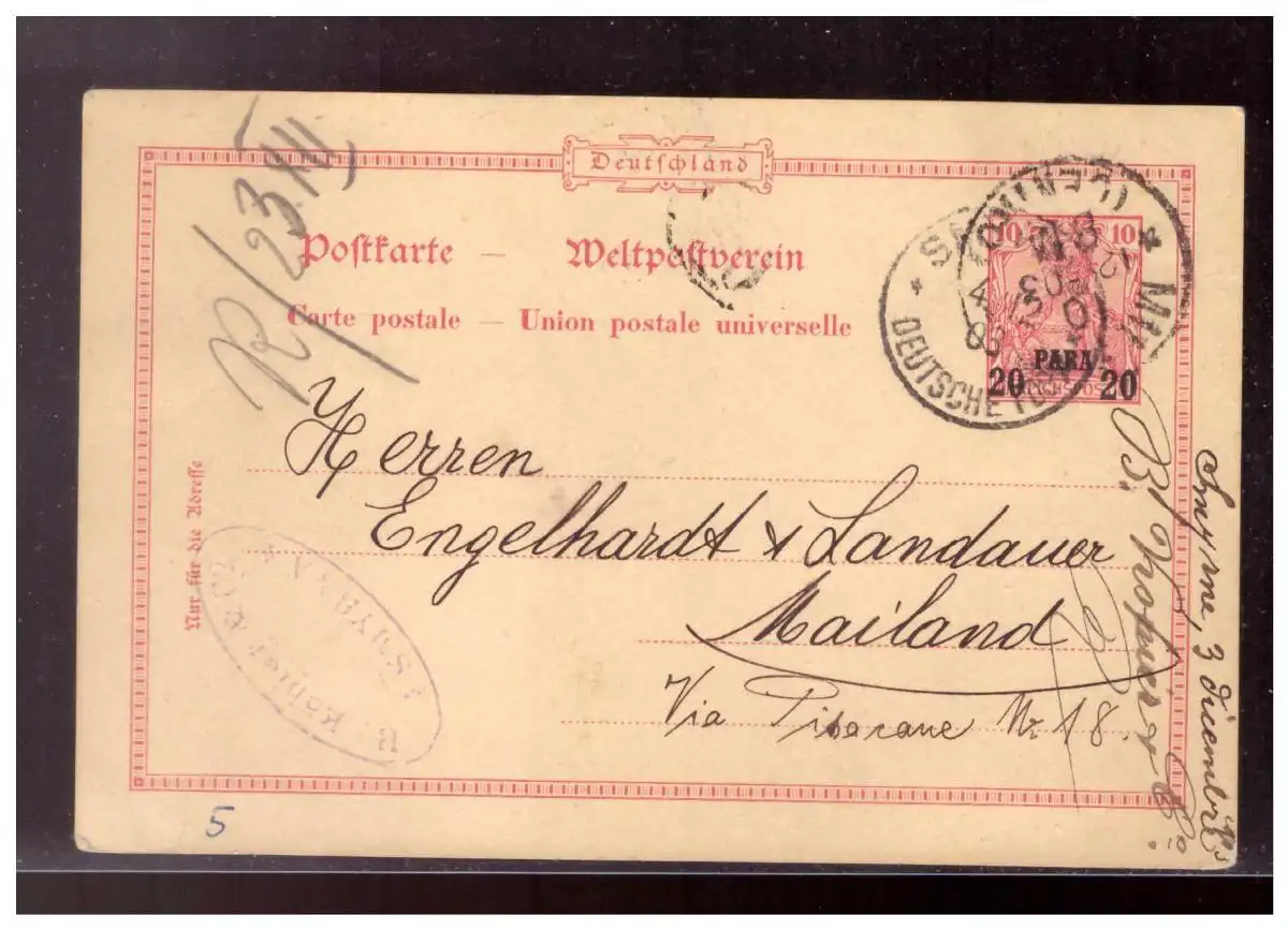 Kolonien (022571) Türkei Ganzsache P9 II Stempel Smyrna 9.12.09 gelaufen nach Mailand
