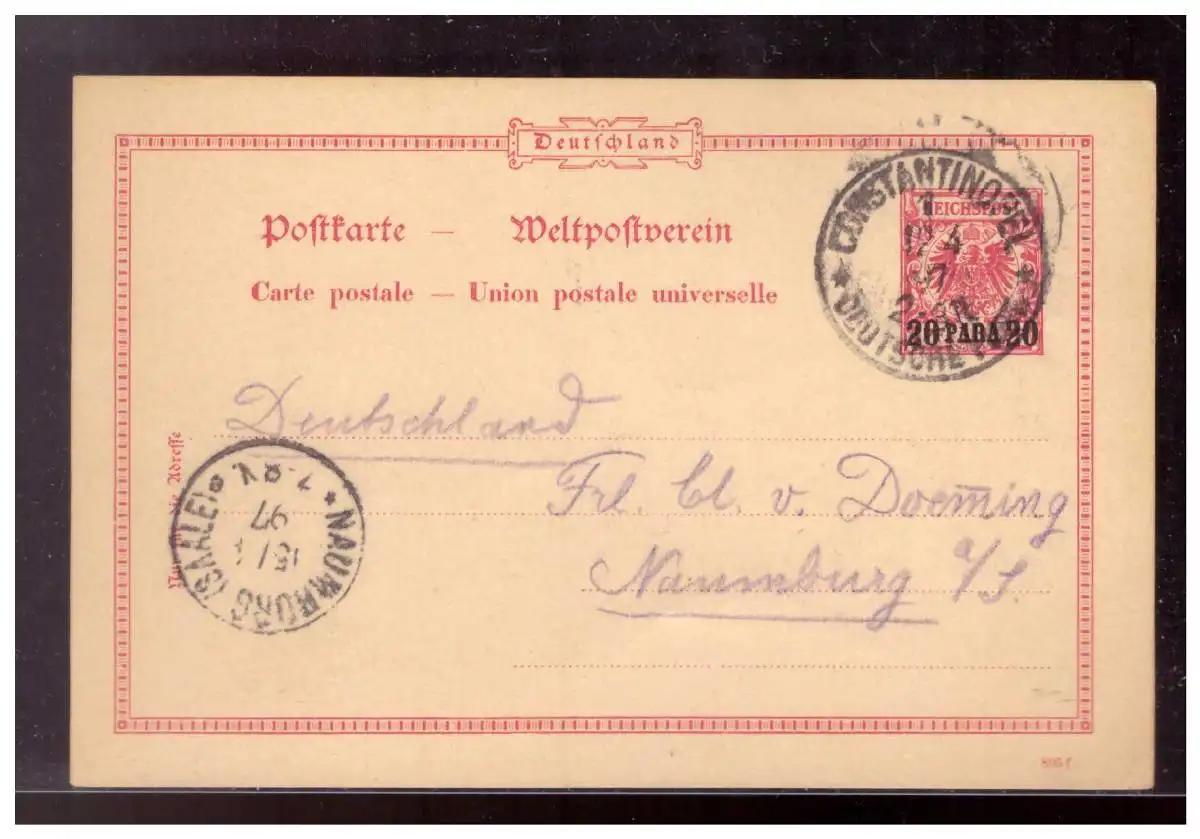 Kolonien (022573) Türkei Ganzsache P3 gelaufen Constantinopel nach Naumburg