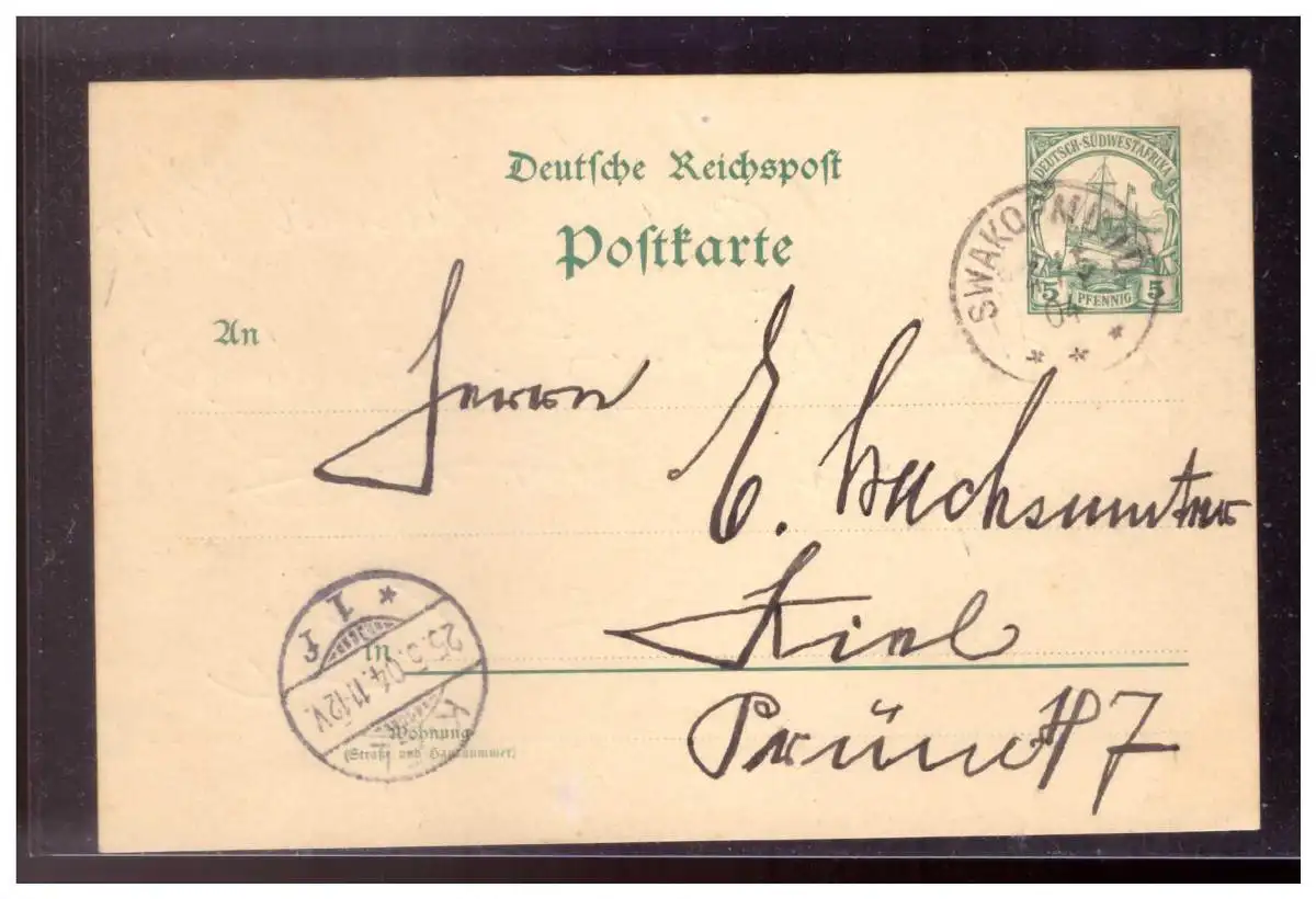 Kolonien (022589) Deutsch- Südwestafrika, Ganzsache gelaufen Swakopmund