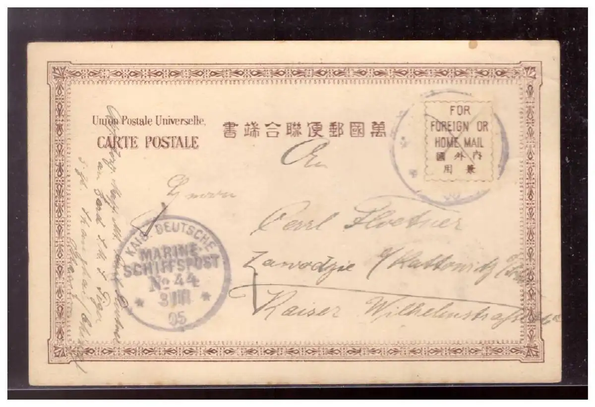 Dt - Reich (022597) Kolonien AK gelaufen Marine Schiffspost No 44 Kanonenboot Tiger 1905