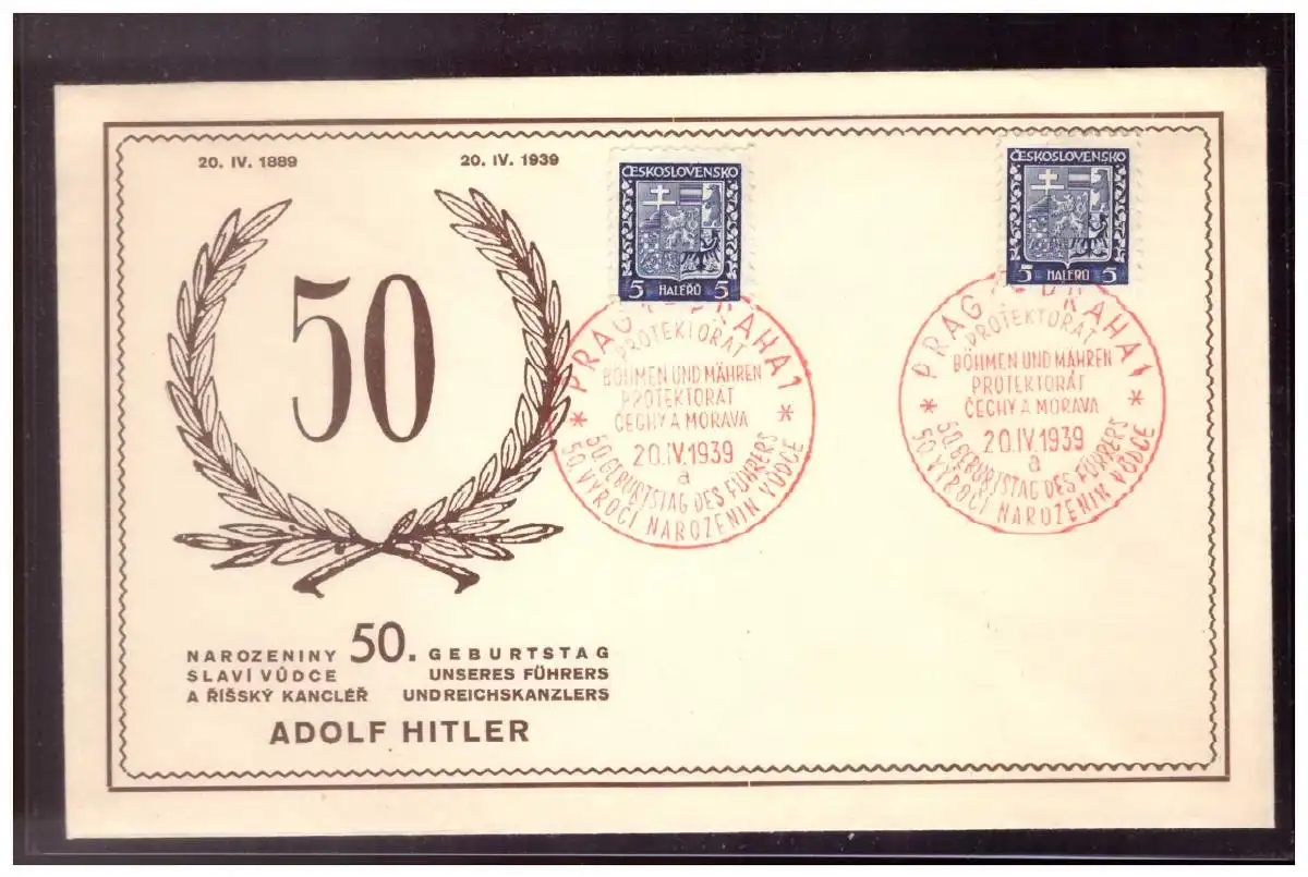 Böhmen & Mähren (022644) Gedenkumschlag Engel SB 3L mit Sonderstempel 3, Prag zum 50. Geburtstag am 20.4.1939