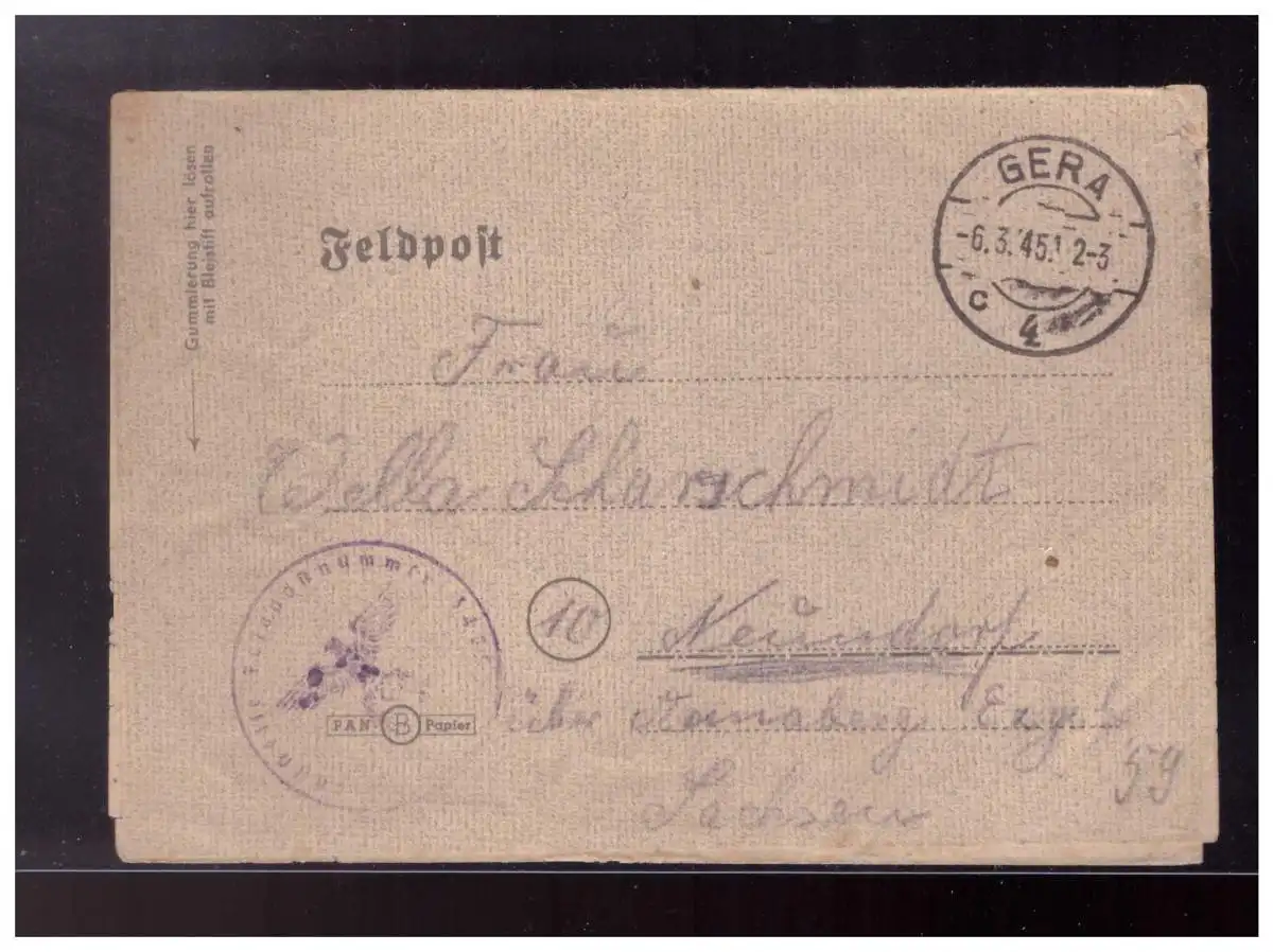 Dt- Reich (022803) Feldpost Faltbrief gelaufen Gera mit TST 6.3.1945 (Späte Post)