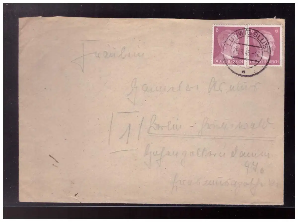 Dt- Reich (022809) Brief gelaufen Ludwigslust nach Berlin mit TST 26.3.1945 (Späte Post)