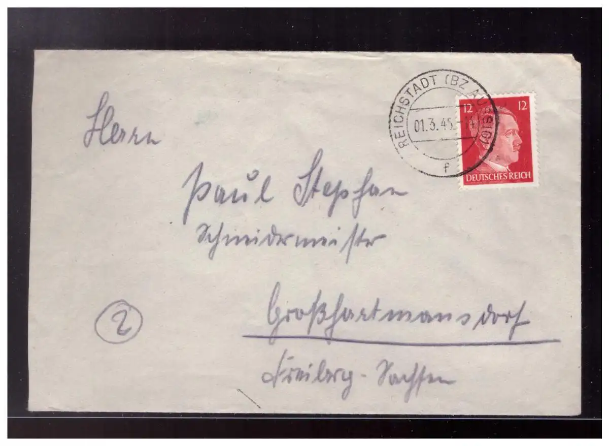 Dt- Reich (022810) Brief gelaufen Reichsstadt Assig mit TST 01.03.1945 (Späte Post)