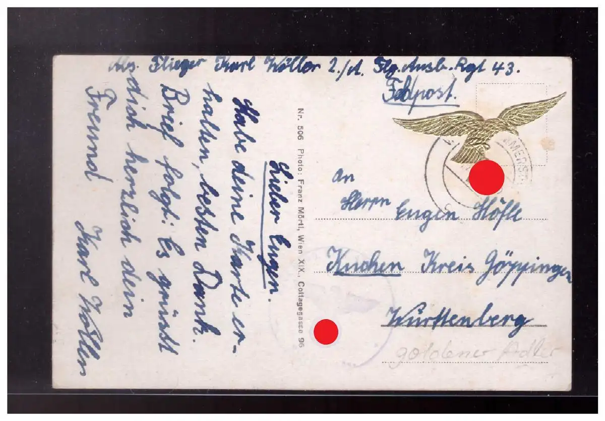 Dt- Reich (022886) AK Wien Heldenplatz, gelaufen mit Feldpost und Vignette goldener Adler am 30.7.1943? Wien