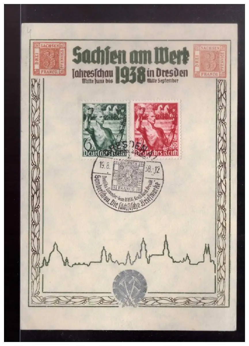 Dt- Reich (022894) Gedenkblatt Jahresschau 1938 in Dresden, Sachsen am Werk mit SST Dresden 19.8.1938