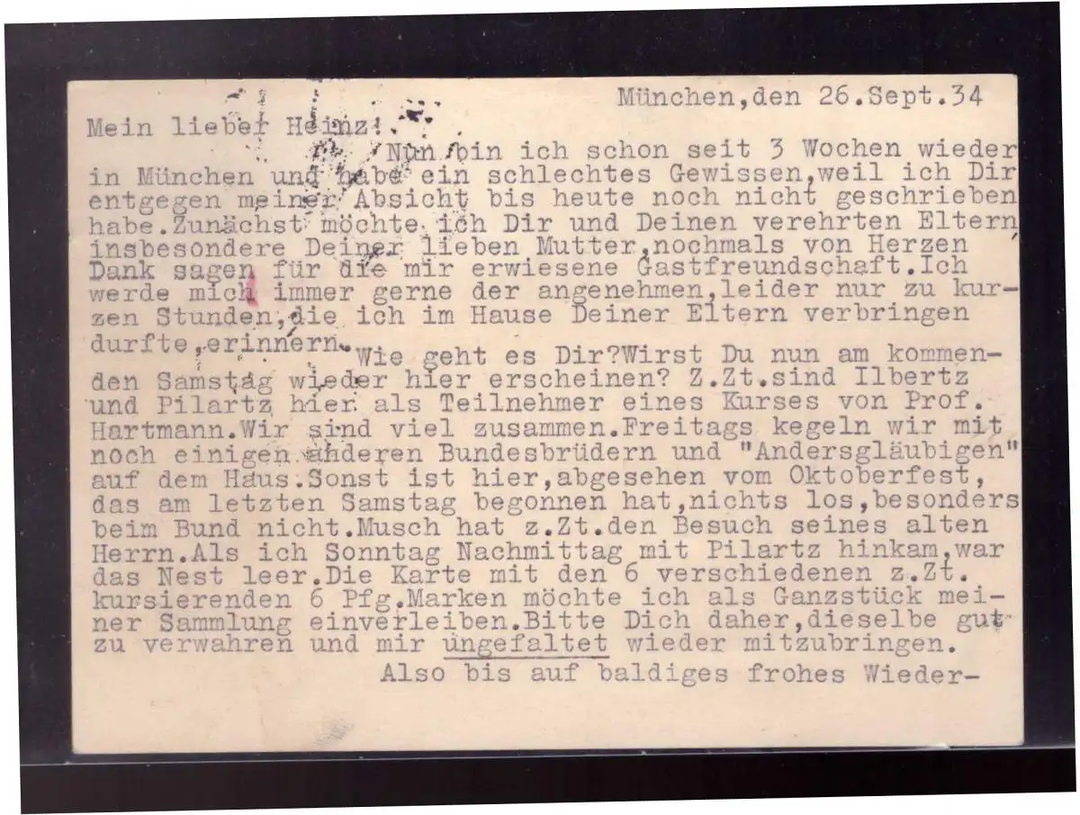 Dt- Reich (023011) Einschreiben Postkarte mit verschiedenen 6 RPF Marken, gelaufen München nach Erkenz 26.9.1934