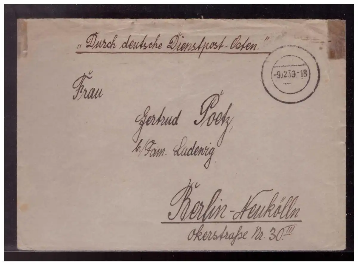 Dt- Reich (023027) Deutsche Dienstpost Osten, Fp Nr: 23795B, gelaufen 9.12.1939 mit Tarnstempel