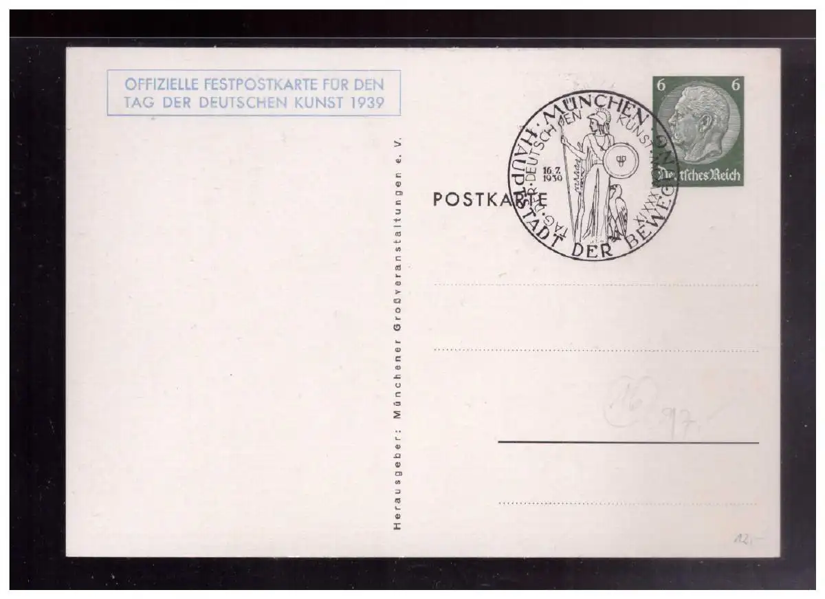Dt- Reich (023085) Propagandaganzsache" Tag der Deutschen Kunst München 1939" mit SST München, 16.7.1939