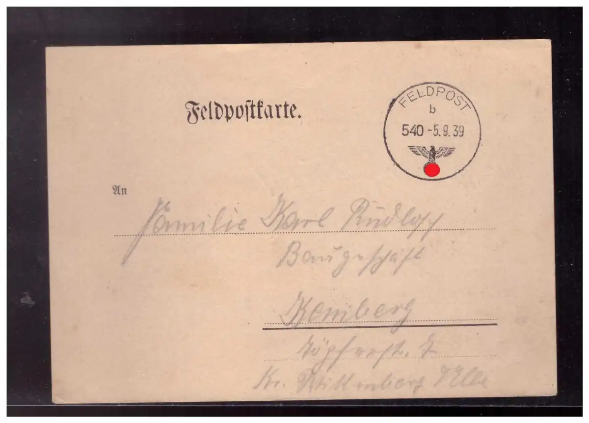 Dt- Reich (023151) Felpostbrief Vordruck für die Mitteilung der Feldpostnummer Anfang WKII 5.9.1939!!