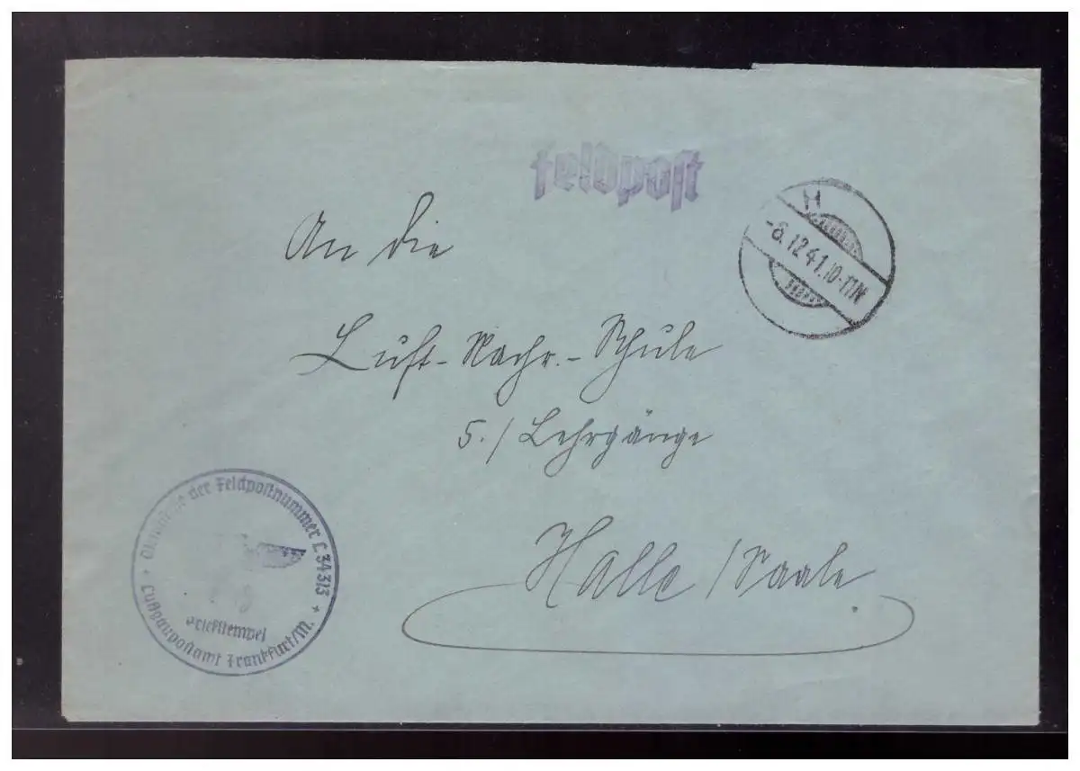 Dt- Reich (023161) Feldpostbrief stummer Stempel Form22 -deusch- aptiert Teile des Stempels entfernt, gelaufen 12/41
