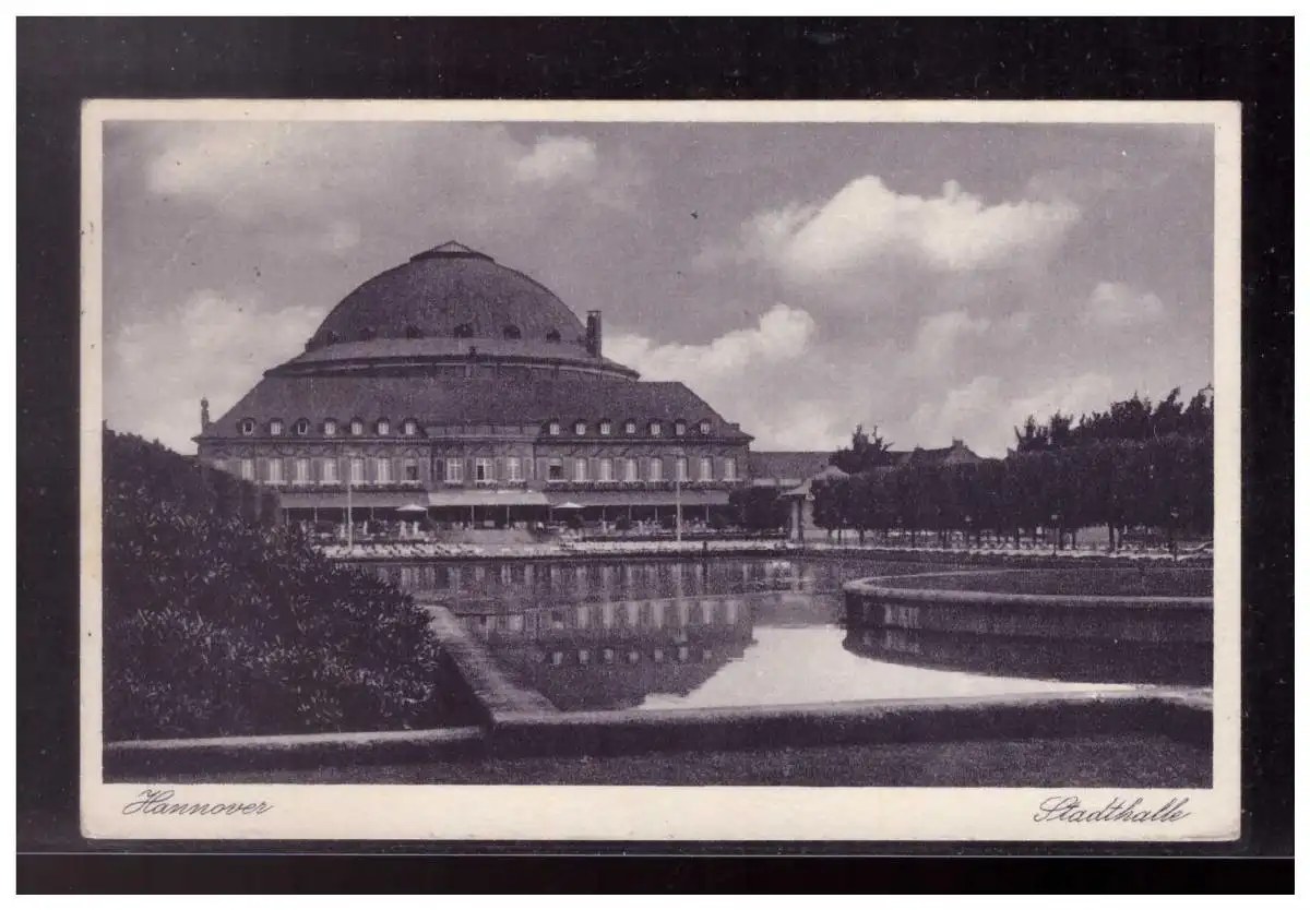 Dt- Reich (023172) Feldpost AK Stadthalle Hannover mit Tarnhalbmaschinenstempel Form 01 mit Wellenlinien gelaufen