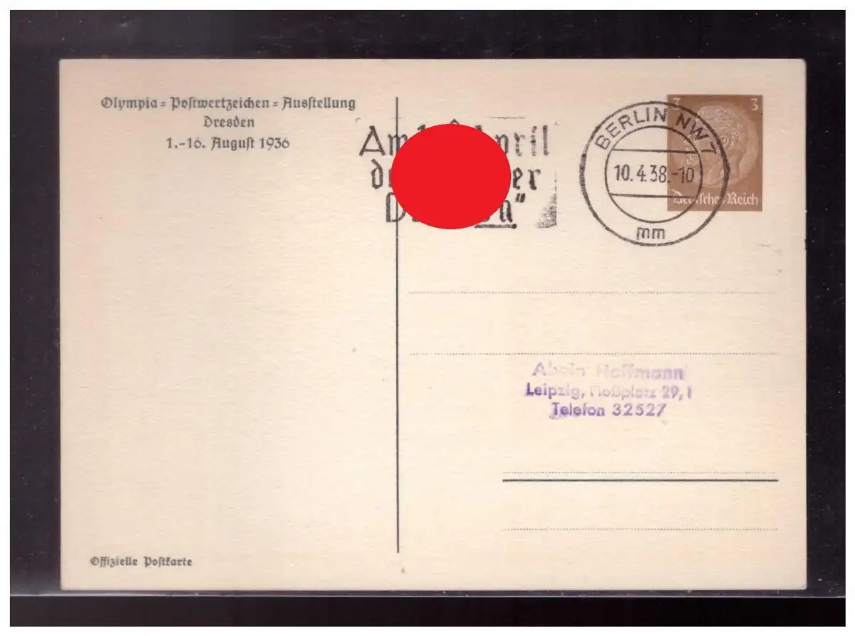 Dt- Reich (023930) Privatganzsache Deutsche Familie, blanco gest. mit Werbestempel Berlin zum Anschluß Österreichs