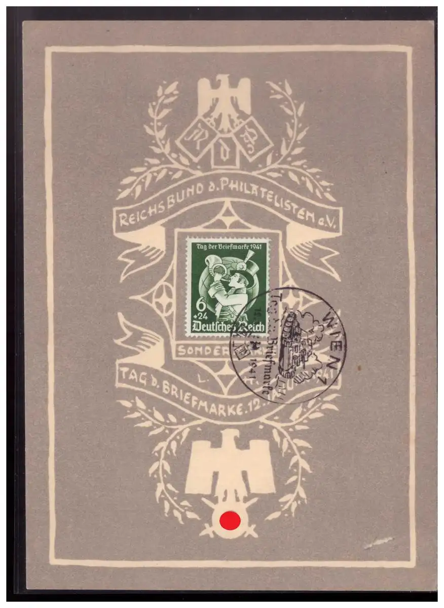 Dt- Reich (024121) Propaganda Gedenkblatt Tag d.Briefmarke mit SST Wien "Panzer" 1941