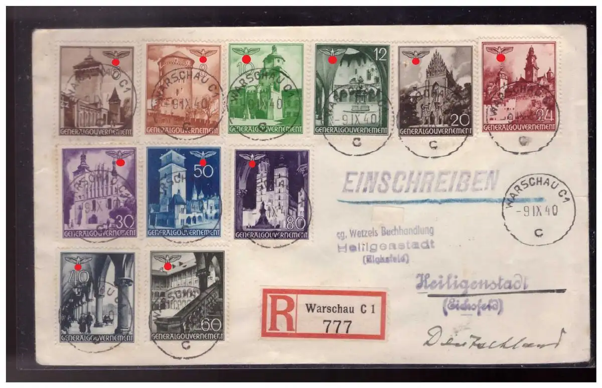WK II GG (024137) Einschreiben MNR 40- 50 gelaufen Warschau nach Heiligenstadt am 9.9.1940