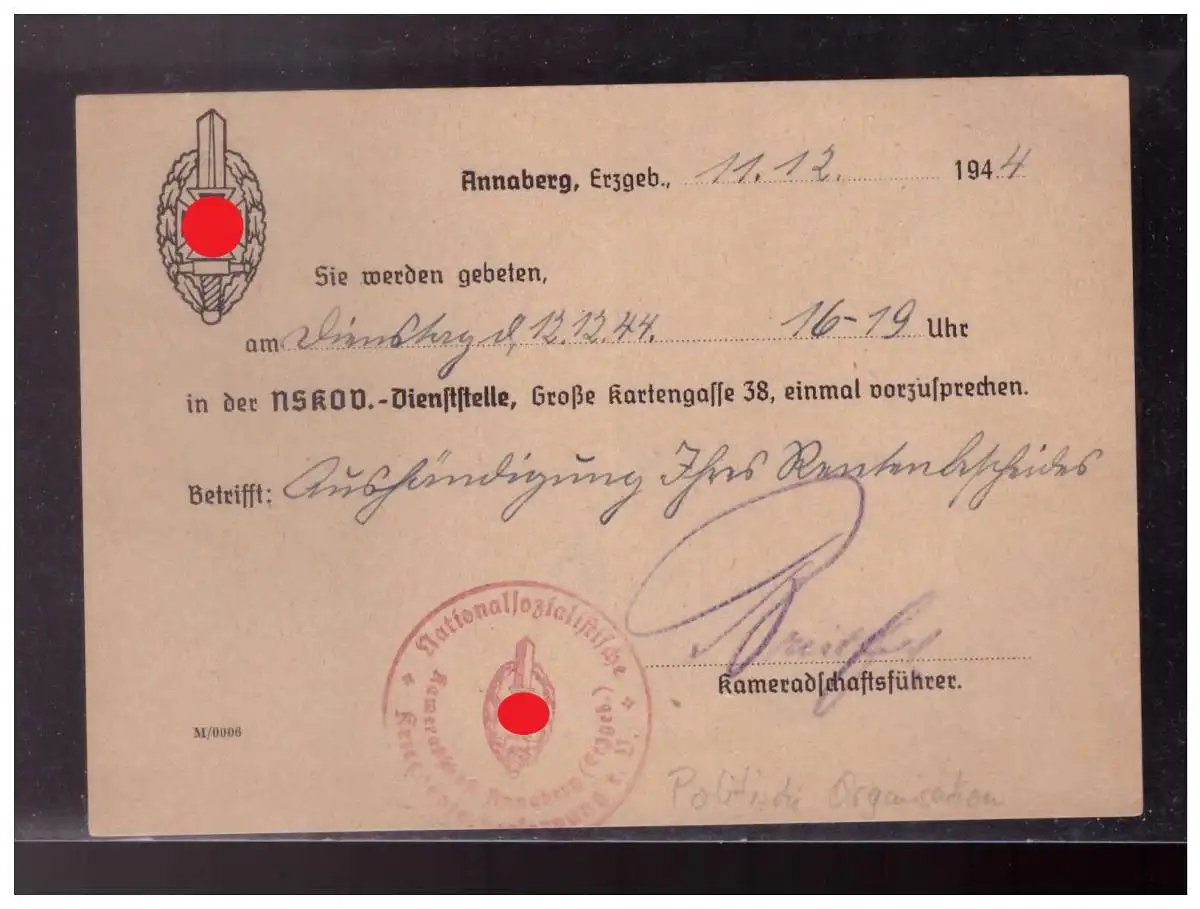 Dt- Reich (024171) Propaganda NSKOV - Dienststelle Annaberg (Nationalsozialistische Kriegsopferfürsorge) 11.12.1944