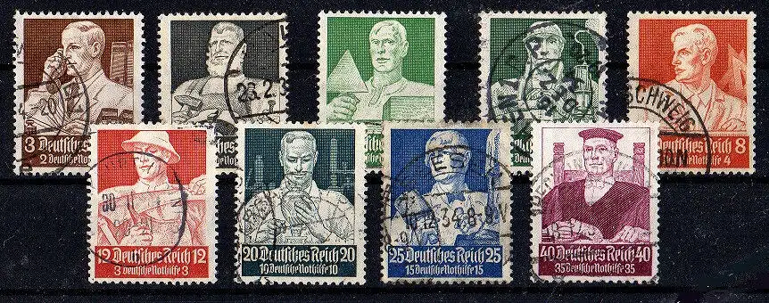 Deutsches Reich, aus Michel Nr. 556 - 564 Einzelmarken zur Auswahl gestempelt.