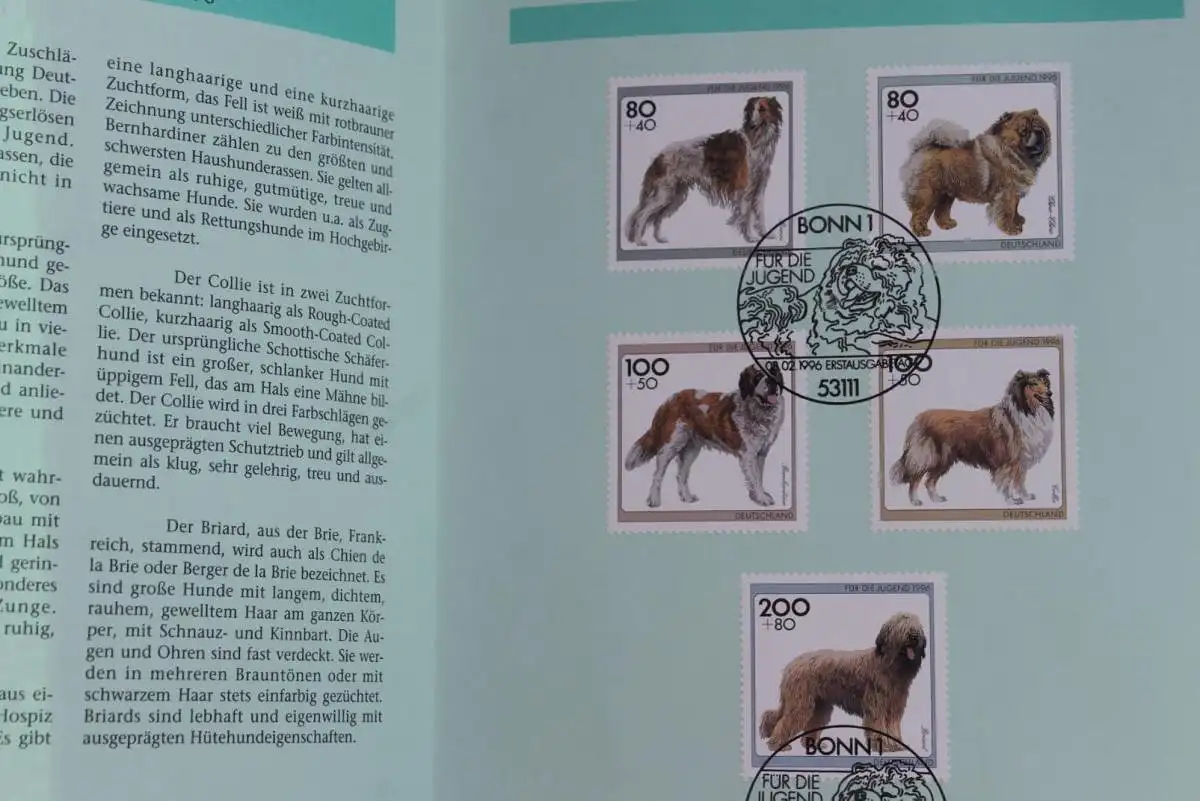 Deutschland 1996; Jahressammlung-ETB der Deutsche POST: Für die Jugend: Hunde, MiNr. 1836-40, bitte lesen