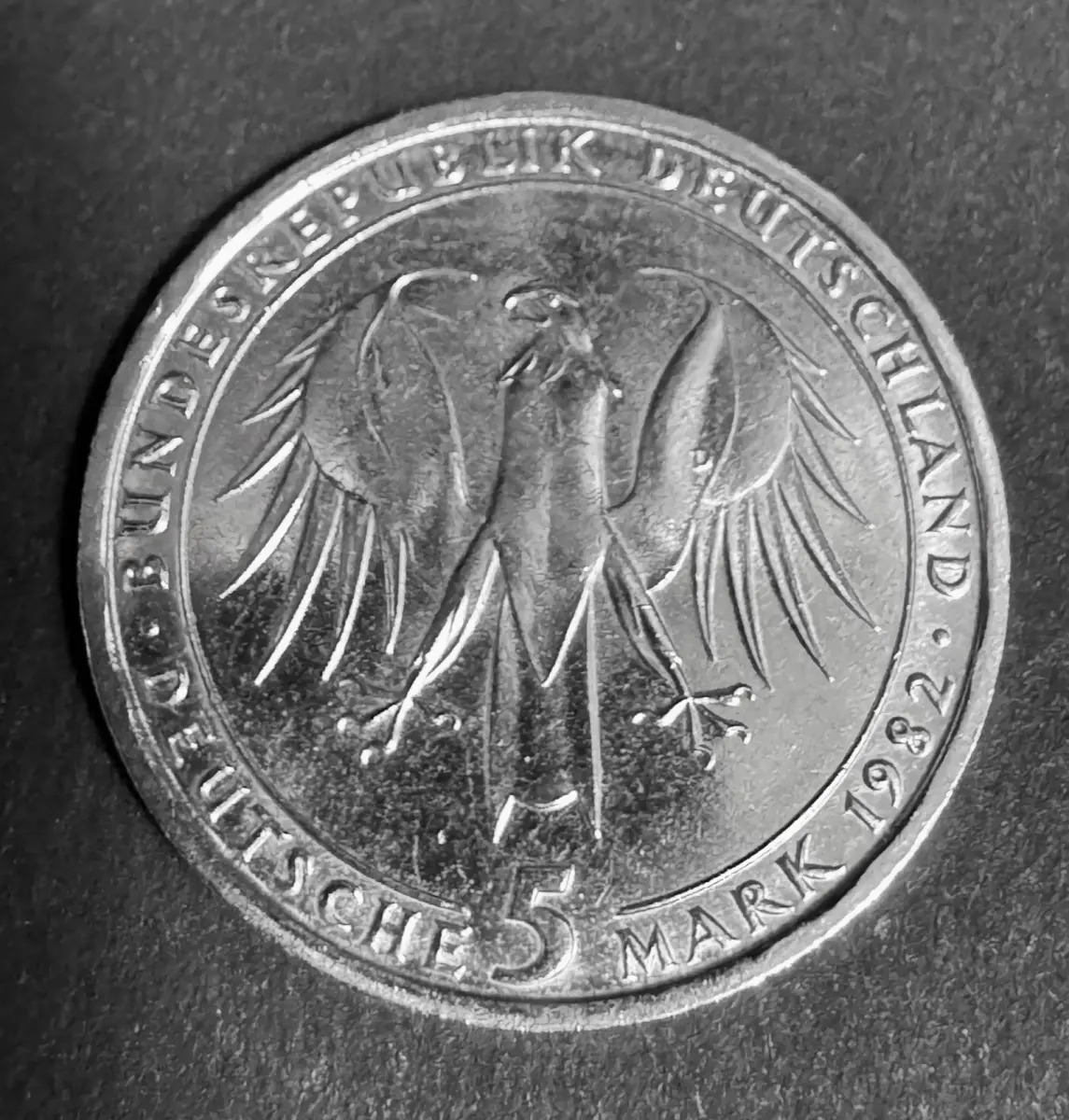 Deutschland Johann Wolfgang von Goethe 5 Mark 1982 Gedenkmünze Porträt Goethes vorne Bundesadler hinten