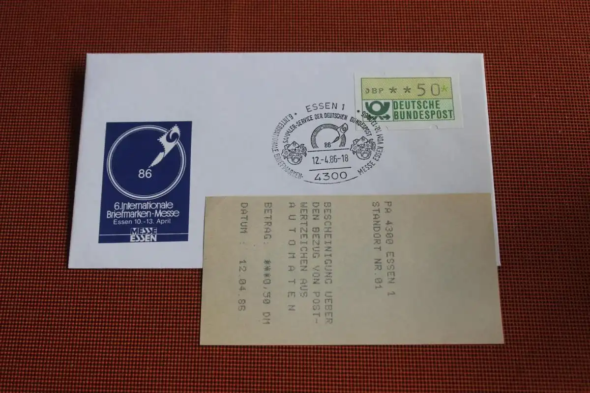 Deutschland ATM Intern. Messe Essen 1986, Brief mit Vignette und Quittung