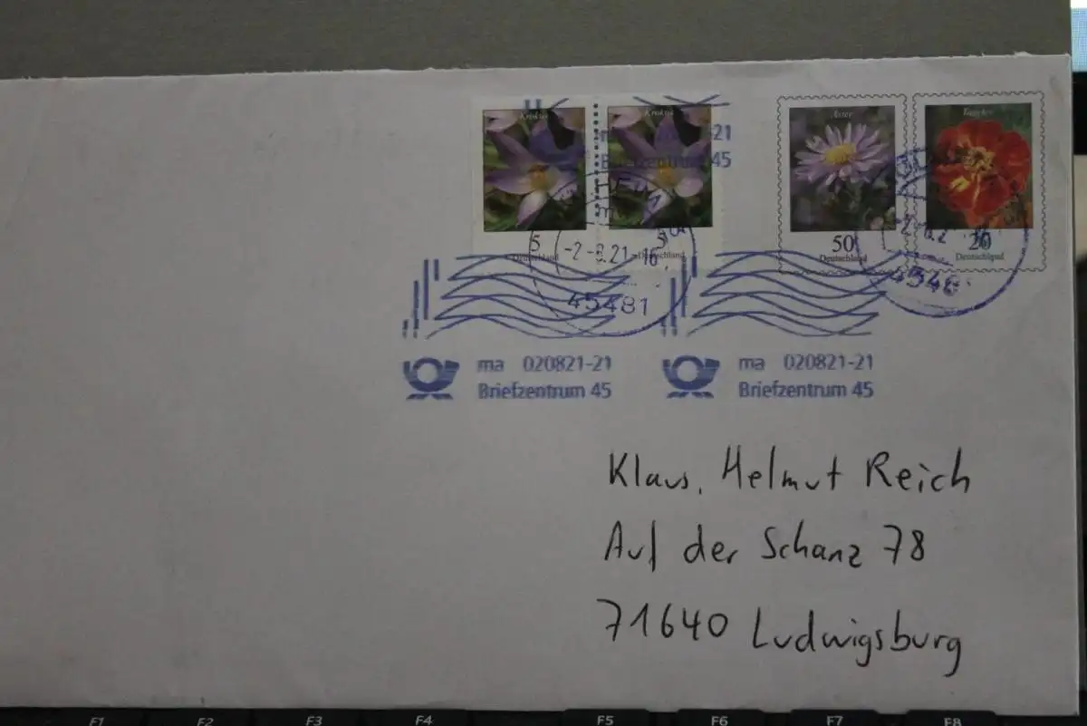 Deutschland, Ganzsache Freimarken Blumen, 50 und 20 C, 2 x 5 C Blumen -Zusatzfrankatur, gebraucht