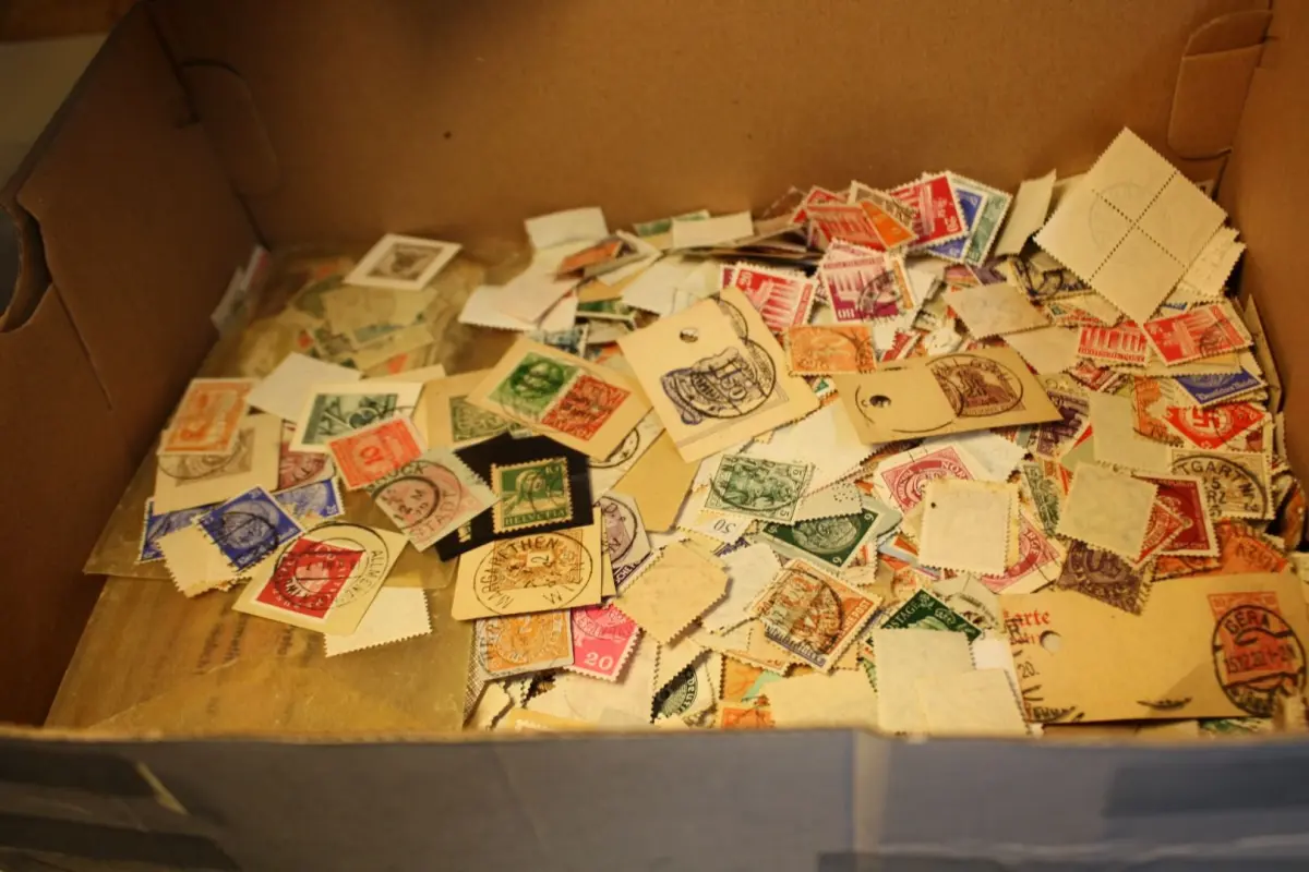 wie im Nachlass vorgefunden, von mir nicht durchsucht, inkl. Karton ca. 800g, meist lose, etwas mit Papier