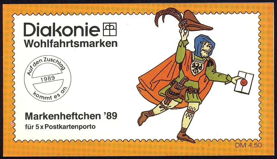 Diakonie/Wofa 1989 Postbeförderung & Briefbote 60 Pf, 5x852, postfrisch