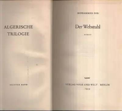 Der Webstuhl; Dib, Mohammed, Erzählungen; Triologie; Algerien; Französische Bourgeoisie; Macht; Faschismus; Wahlen Algerien; Alliierten landen; Hoffnung kommt auf; Wurden enttäuscht