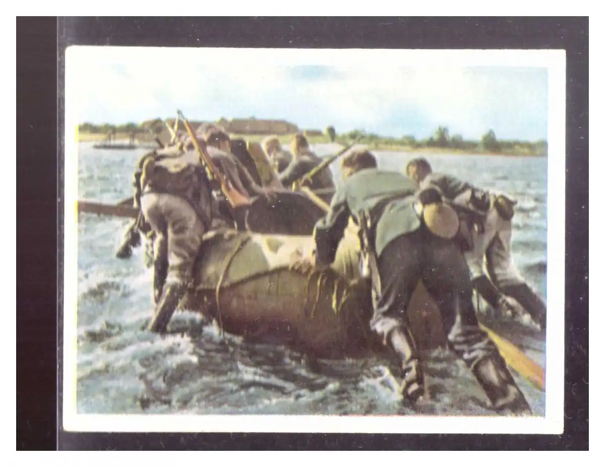 Freie Beschreibung: Dt.- Reich (009973) Sammelbild Eckstein, Die Deutsche Wehrmacht, Bild 42, Übung mit Floßsäcken